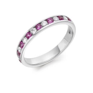 Round Brilliant Diamond Offset Channel Set Half Eternity Ring with 30% Coverage