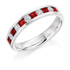 Round Brilliant Diamond Offset Channel Set Half Eternity Ring with 50% Coverage