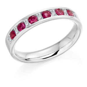 Round Brilliant Diamond Offset Channel Set Half Eternity Ring with 75% Coverage