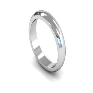 Heavy Weight D-shape Profile 3mm wide 18ct White Gold Plain Wedding Ring