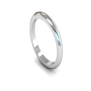 Heavy Weight D-shape Profile 2mm wide 14ct White Gold Plain Wedding Ring