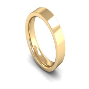 Heavy Weight Edged Flat Court Profile 4mm wide 9ct Yellow Gold Plain Wedding Ring