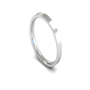 Light Weight Edged Flat Court Profile 2mm wide 14ct White Gold Plain Wedding Ring