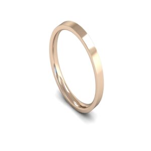 Light Weight Edged Flat Court Profile 2mm wide 18ct Rose Gold Plain Wedding Ring