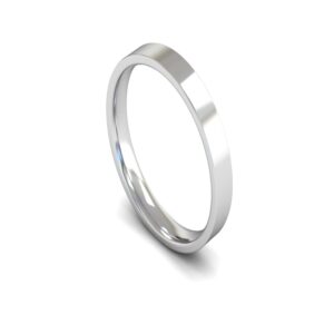 Light Weight Edged Flat Court Profile 2.5mm wide 14ct White Gold Plain Wedding Ring