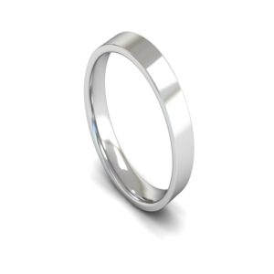 Light Weight Edged Flat Court Profile 3mm wide 14ct White Gold Plain Wedding Ring