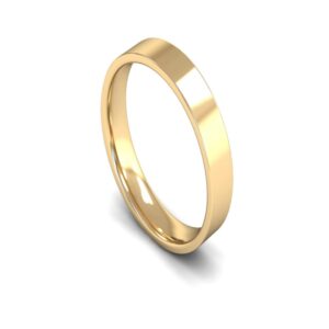 Light Weight Edged Flat Court Profile 3mm wide 14ct Yellow Gold Plain Wedding Ring