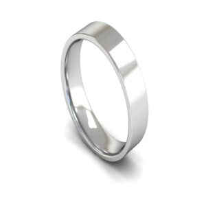 Light Weight Edged Flat Court Profile 4mm wide 14ct White Gold Plain Wedding Ring