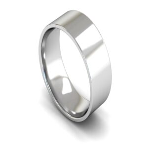 Light Weight Edged Flat Court Profile 5mm wide 14ct White Gold Plain Wedding Ring