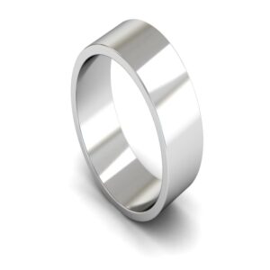 Light Weight Flat Profile 6mm wide 18ct White Gold Plain Wedding Ring