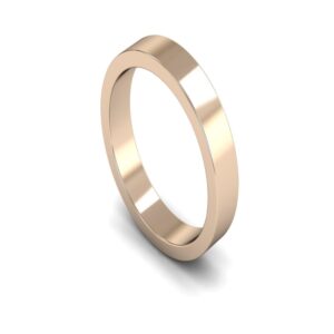 Medium Weight Flat Profile 3mm wide 18ct Rose Gold Plain Wedding Ring