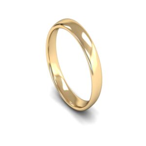 Light Weight Slight Court Profile 3mm wide 18ct Yellow Gold Plain Wedding Ring