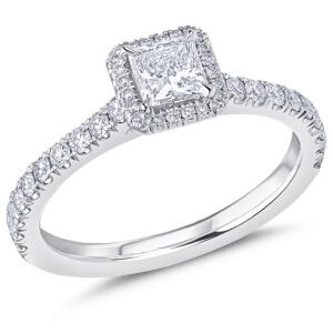Princess Cut Oyster Deluxe 0.75ct Diamond Engagement Ring with Diamond Set Shoulders