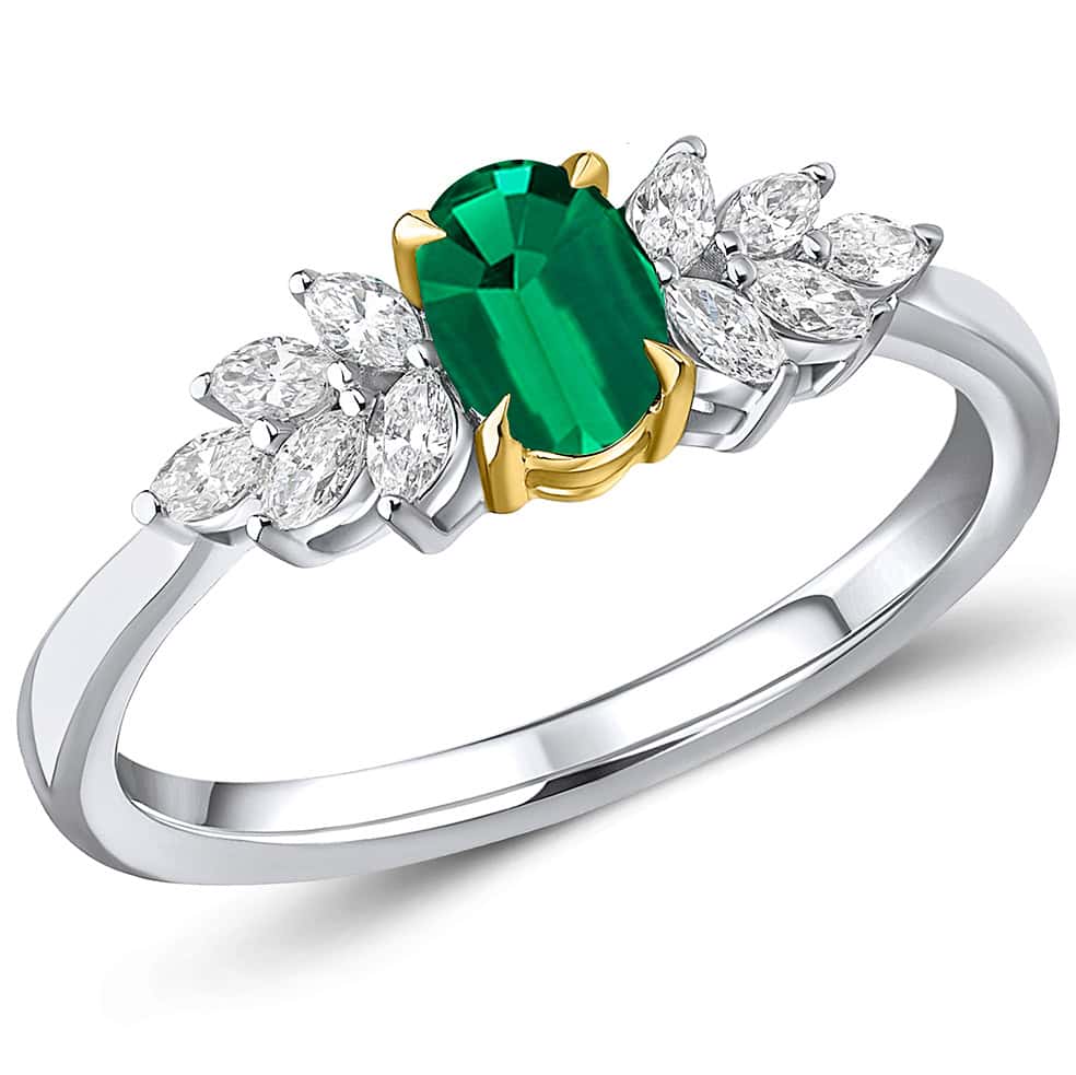 Emerald Oval Cut Cluster 0.5ct Engagement Ring