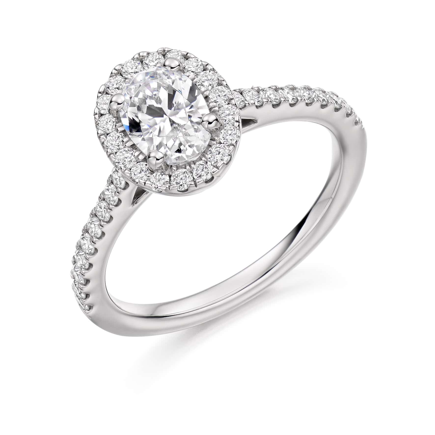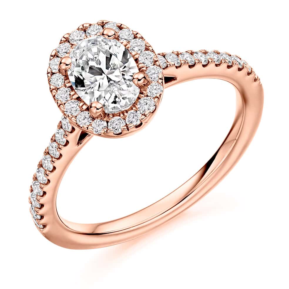 Emerald Oval Cut Cluster 0.85ct Engagement Ring with Diamond Set Shoulders