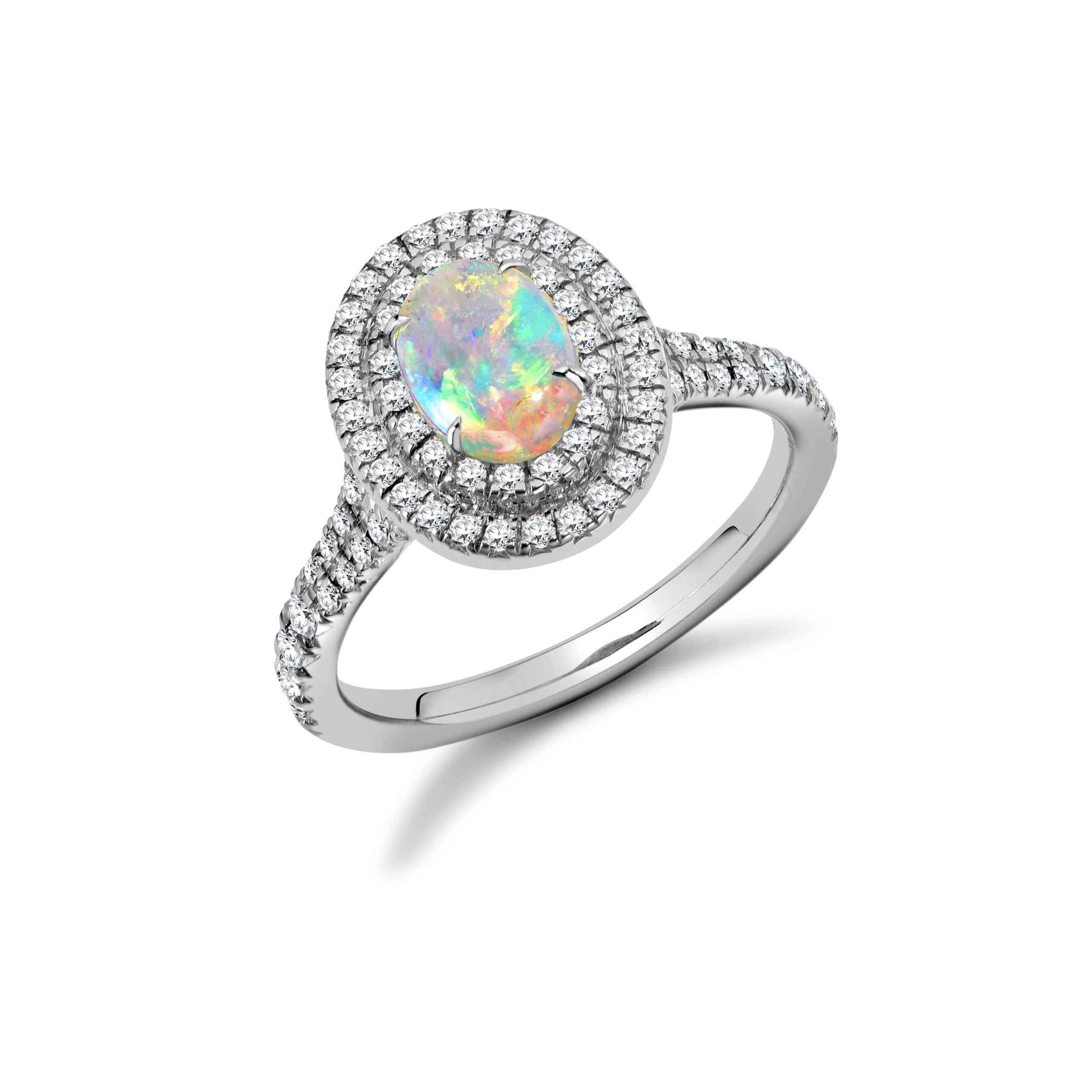 Opal Oval Cut Halo 0.5ct Engagement Ring with Diamond Set Shoulders