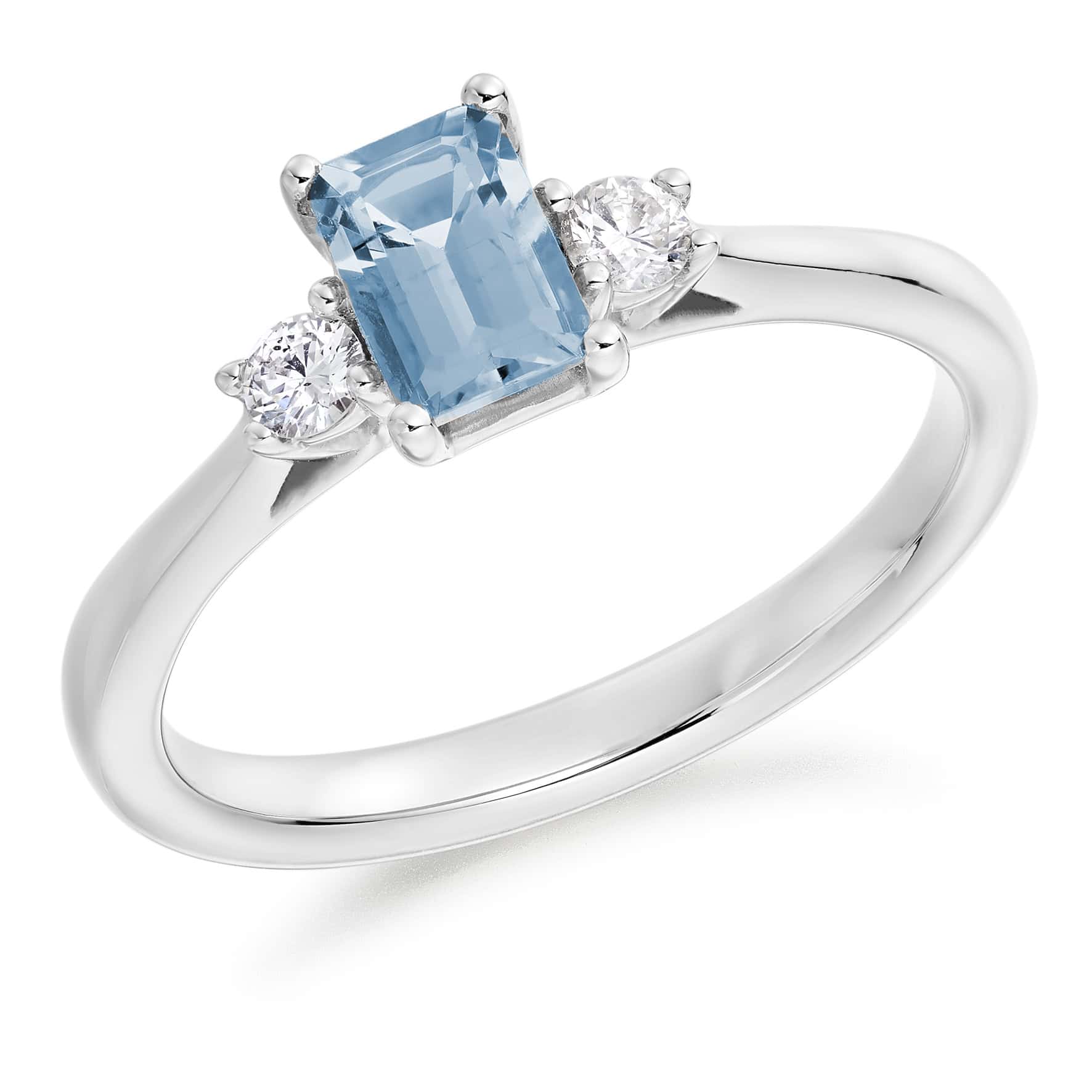 Aquamarine and Diamond Emerald Cut Trilogy Engagement Ring