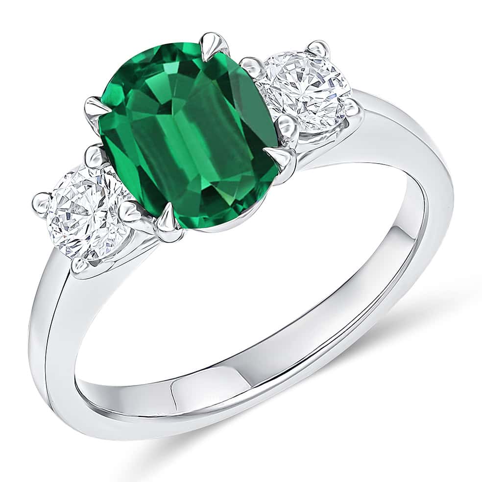 Emerald and Diamond Oval Cut Trilogy Engagement Ring