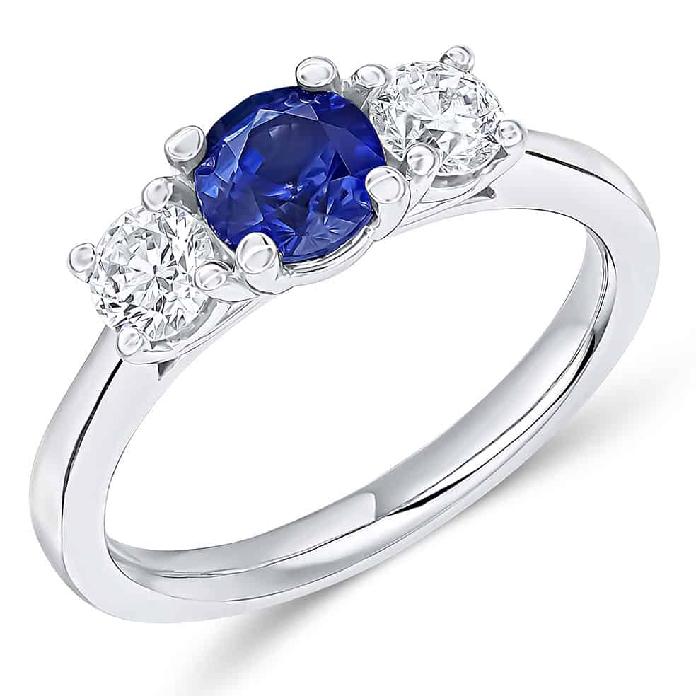 Blue Sapphire and Diamond Round Brilliant Trilogy Engagement Ring