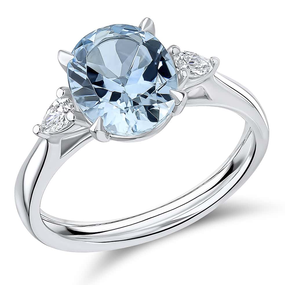 Aquamarine and Diamond Oval Cut Trilogy Engagement Ring