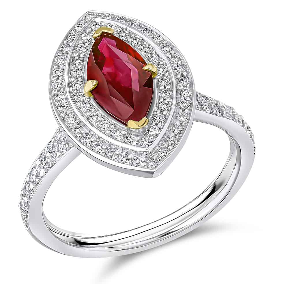 Ruby Marquise Cut Cluster 1.25ct Engagement Ring with Diamond Set Shoulders