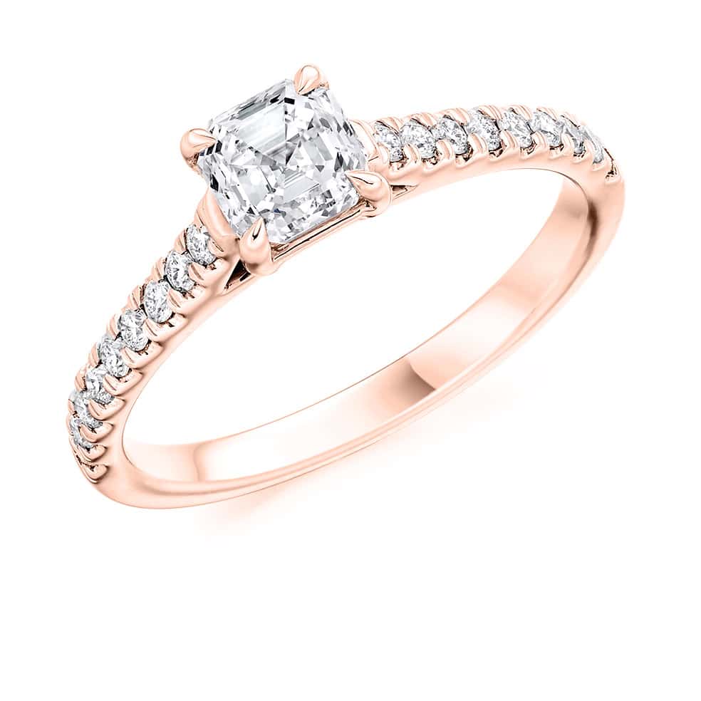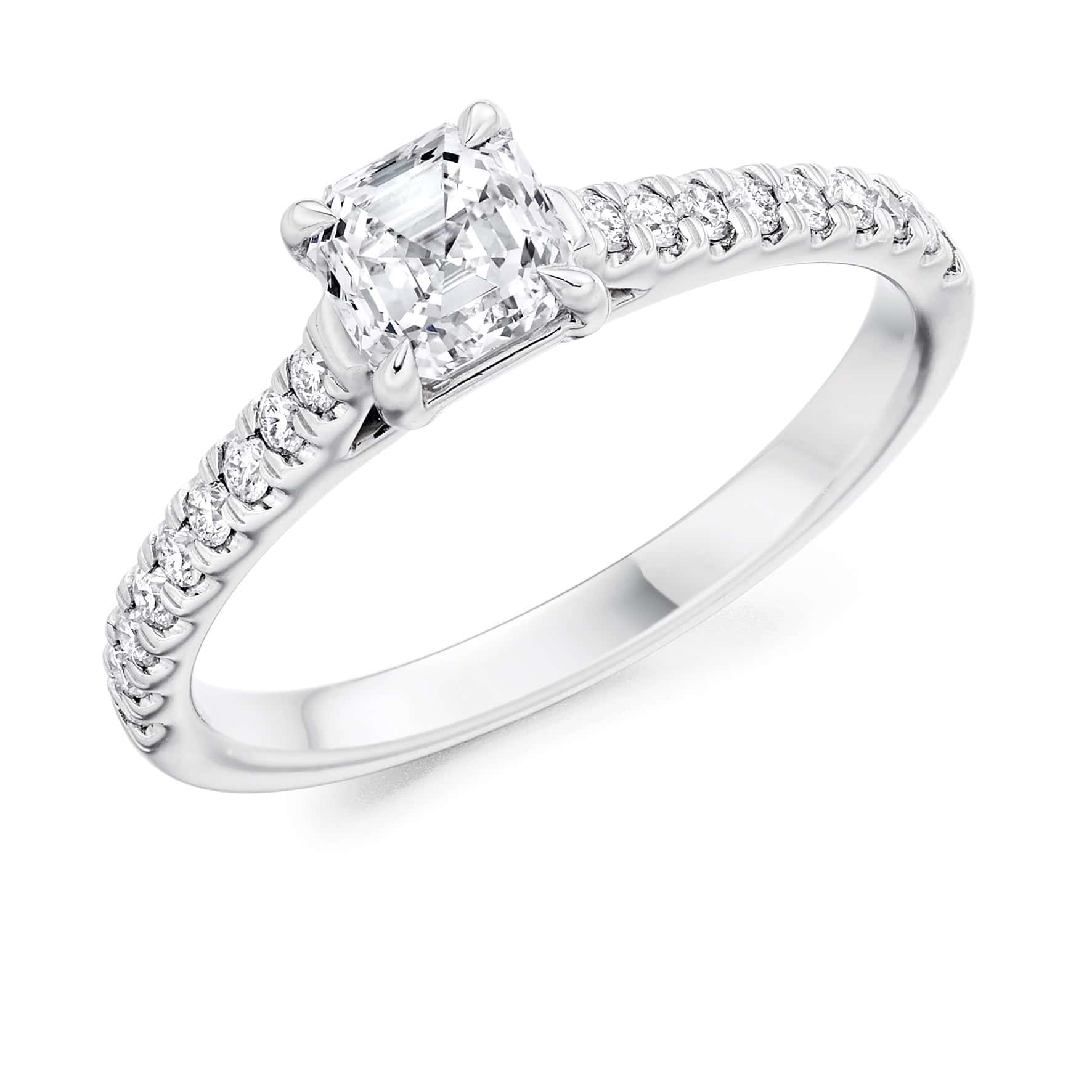 Asscher Cut Solitaire 0.5ct Diamond Engagement Ring with Diamond Set Shoulders