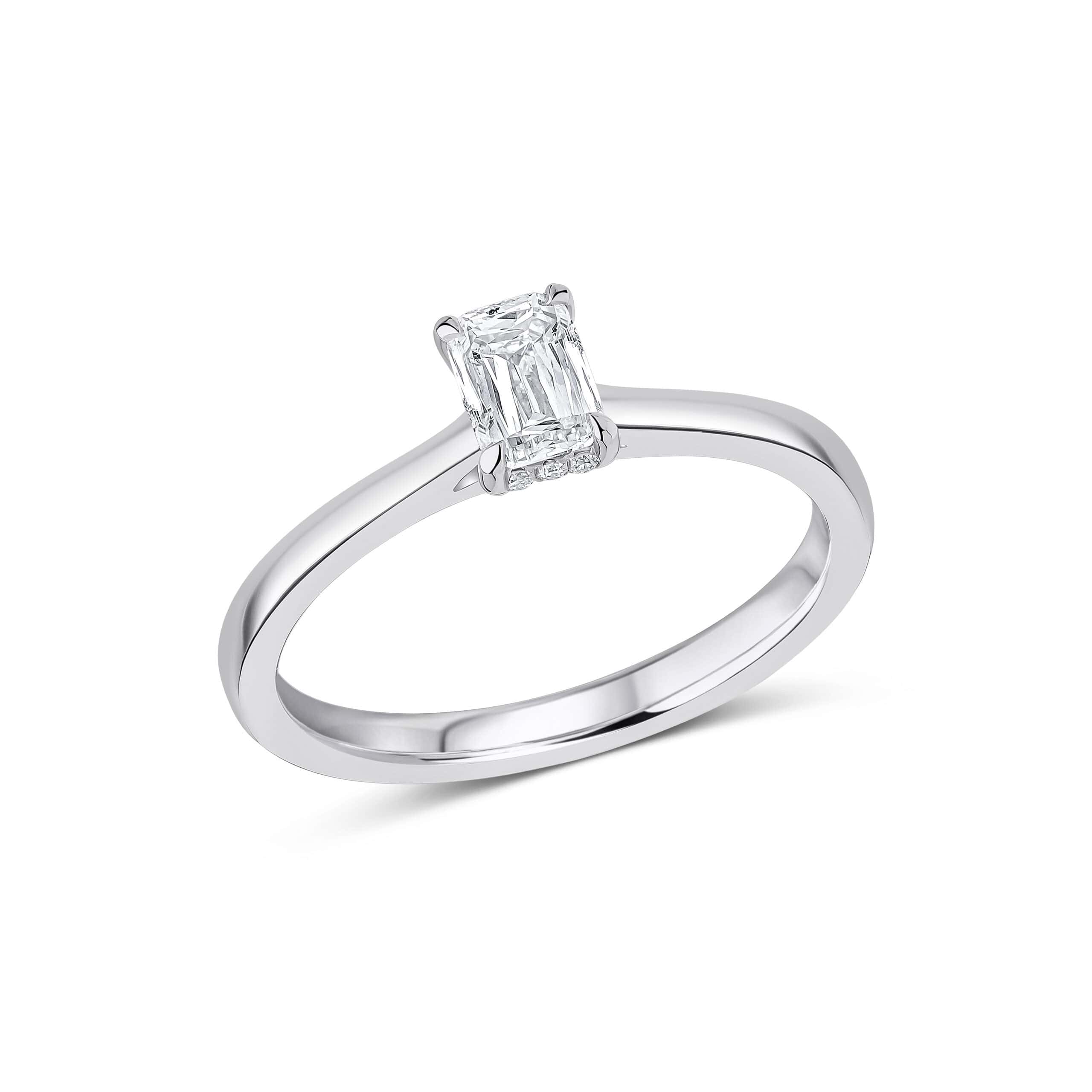 Crisscut Emerald Hidden Halo, Solitaire 0.5ct Diamond Engagement Ring