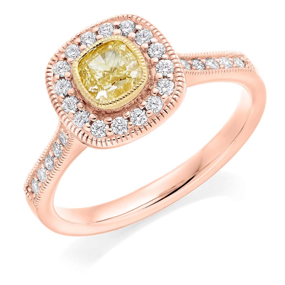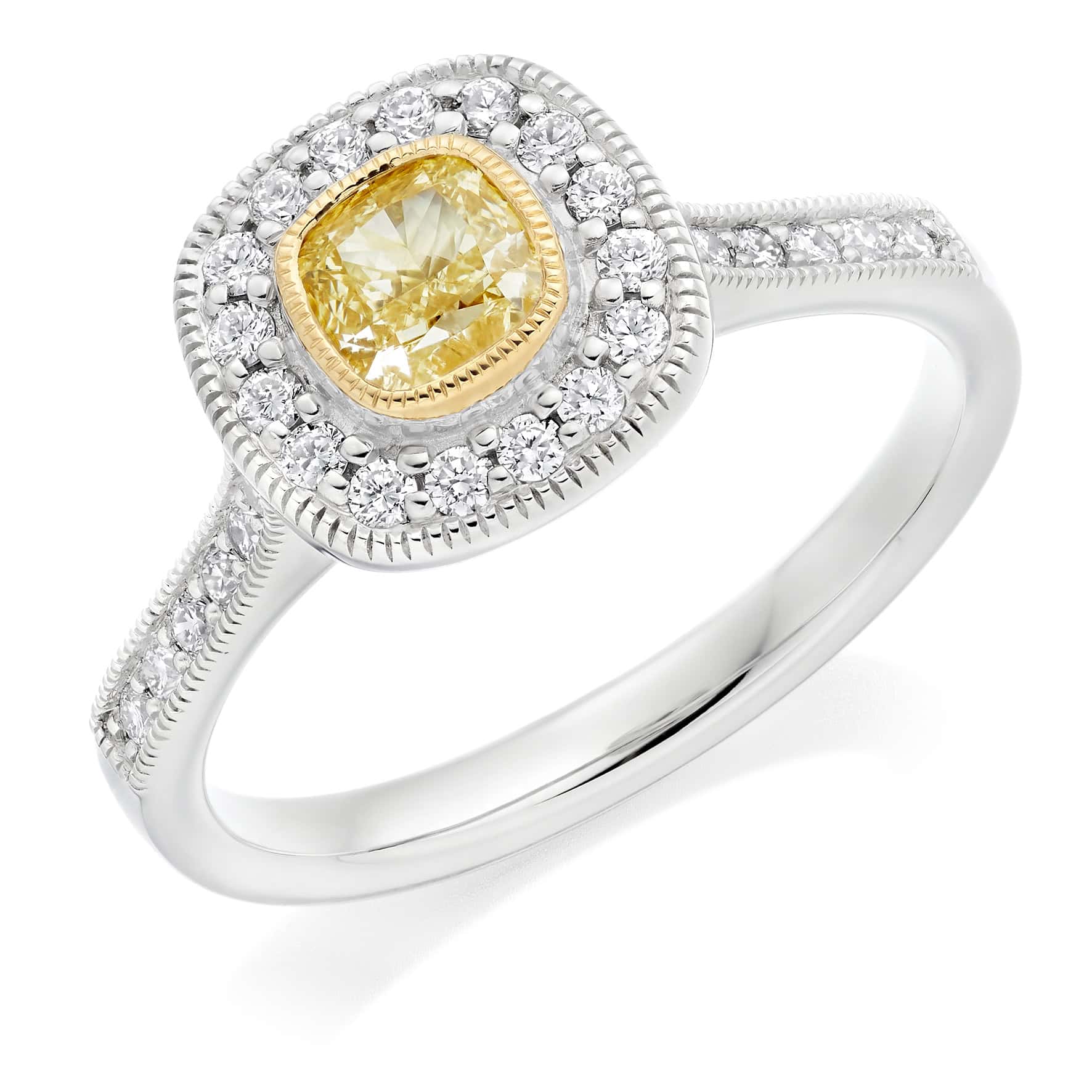 Cushion Cut Halo 0.5ct Diamond Engagement Ring with Diamond Set Shoulders