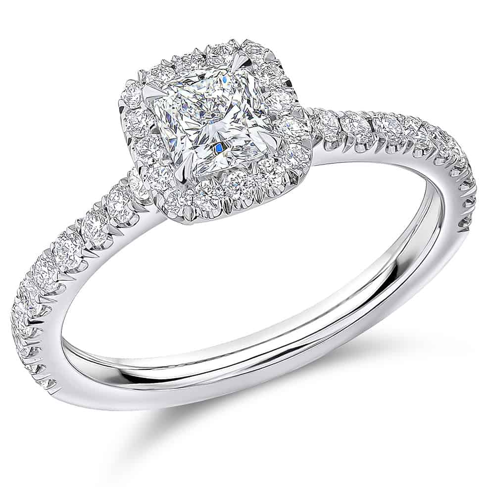 Radiant Cut Halo 1ct Diamond Engagement Ring with Diamond Set Shoulders