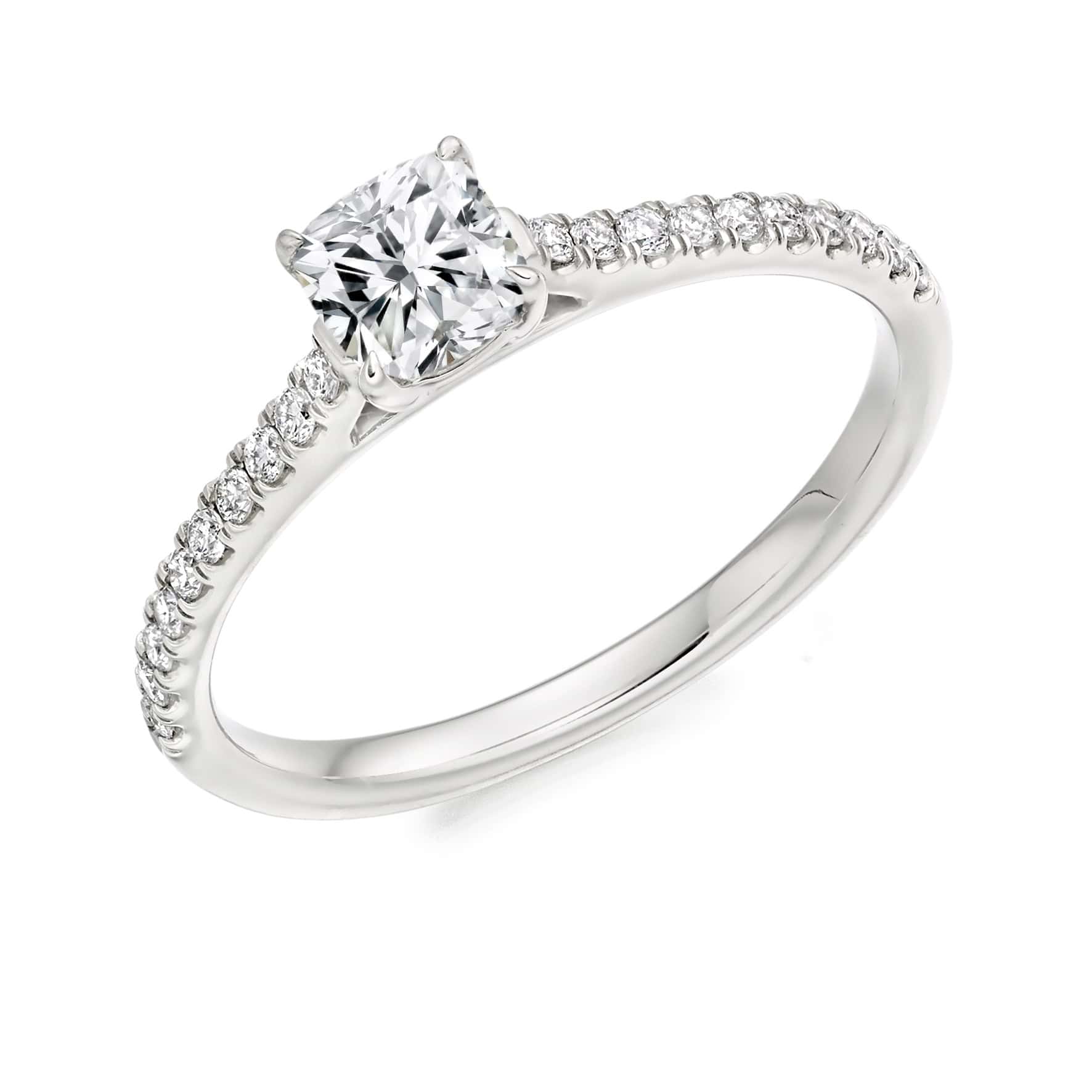 Cushion Cut Solitaire 0.33ct Diamond Engagement Ring with Diamond Set Shoulders