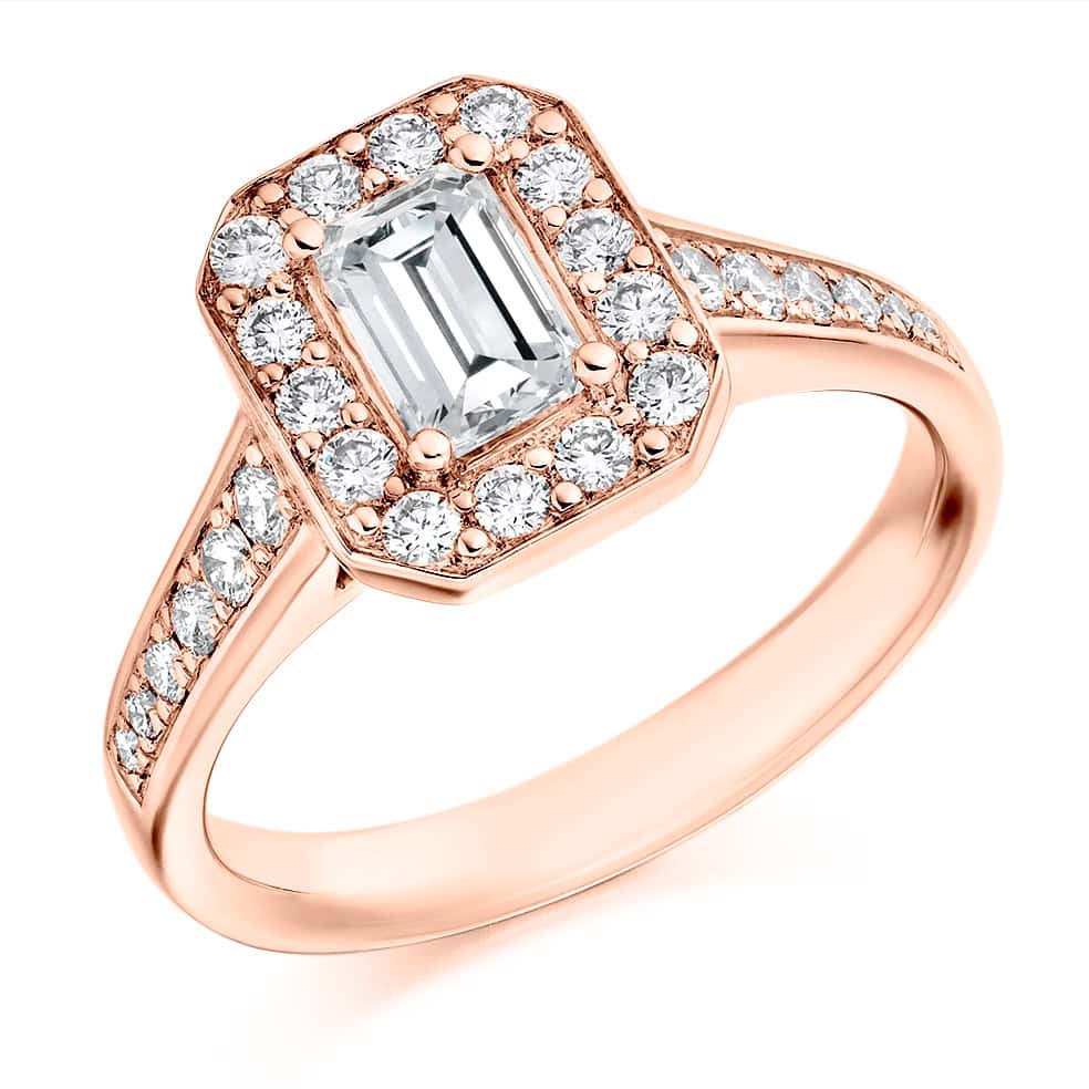 Emerald Cut Halo 0.5ct Diamond Engagement Ring with Diamond Set Shoulders