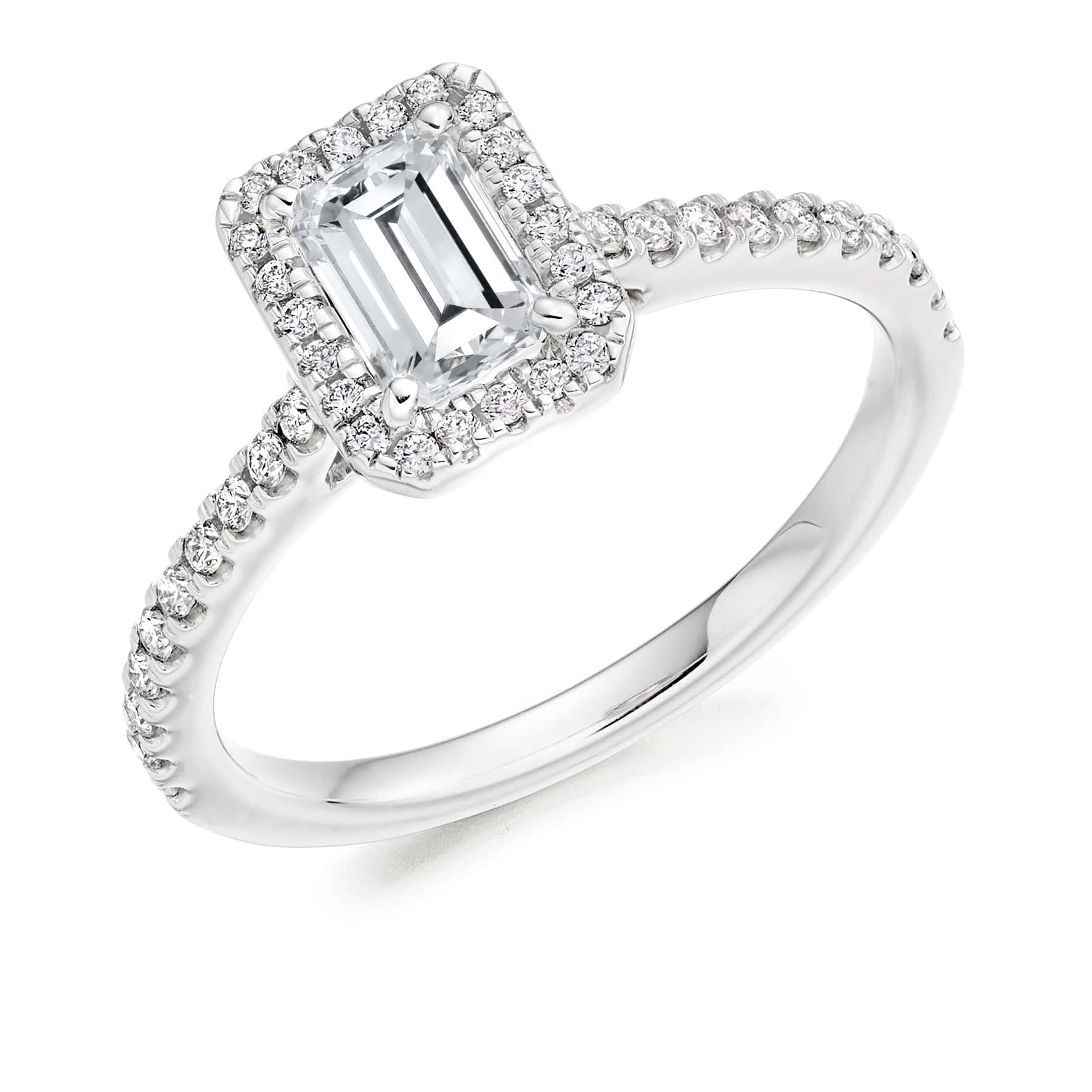 Emerald Cut Halo 0.75ct Diamond Engagement Ring with Diamond Set Shoulders