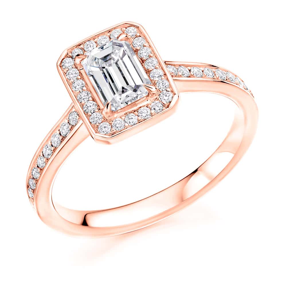 Emerald Cut Halo 0.75ct Diamond Engagement Ring with Diamond Set Shoulders