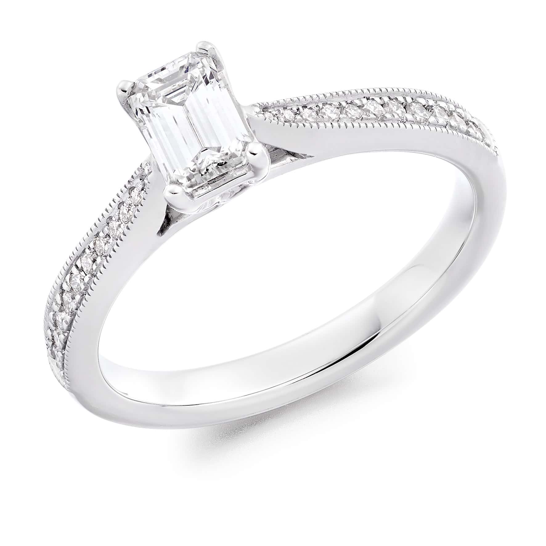 Emerald Cut Solitaire 0.5ct Diamond Engagement Ring with Diamond Set Shoulders