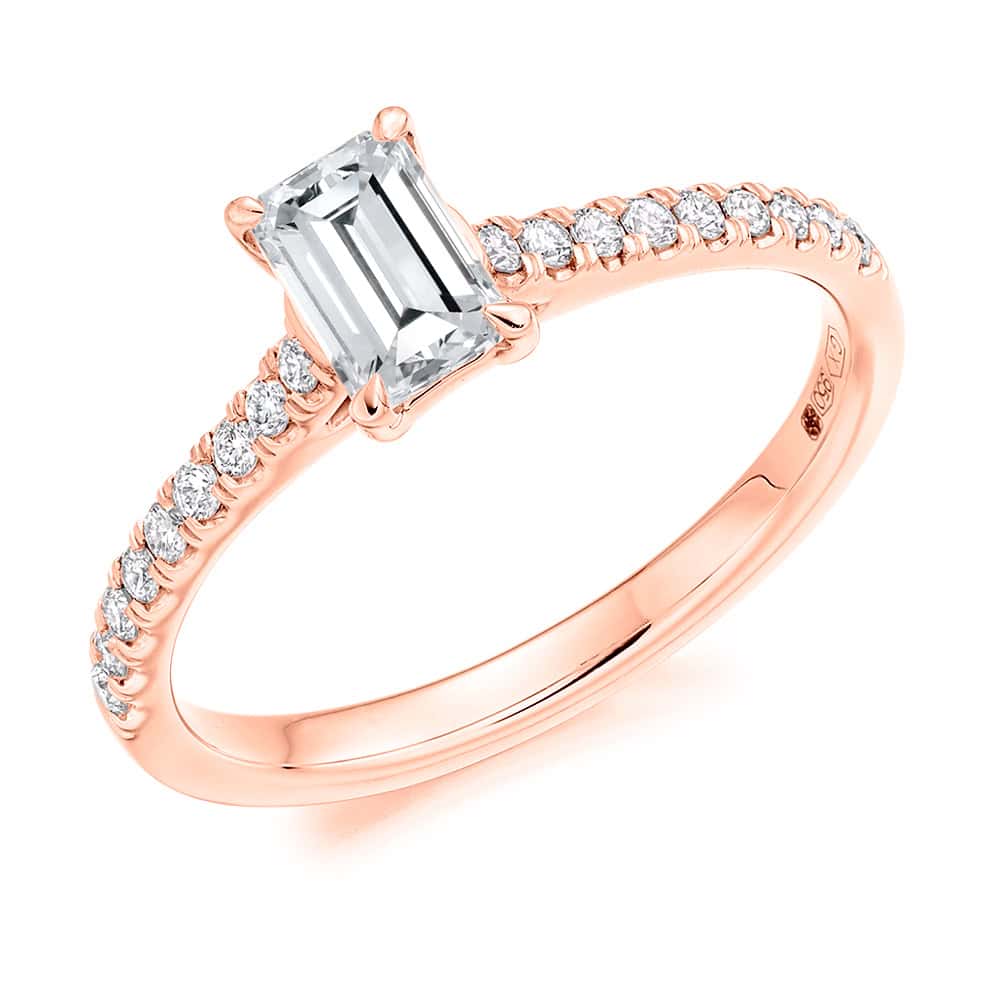 Emerald Cut Solitaire 0.5ct Diamond Engagement Ring with Diamond Set Shoulders