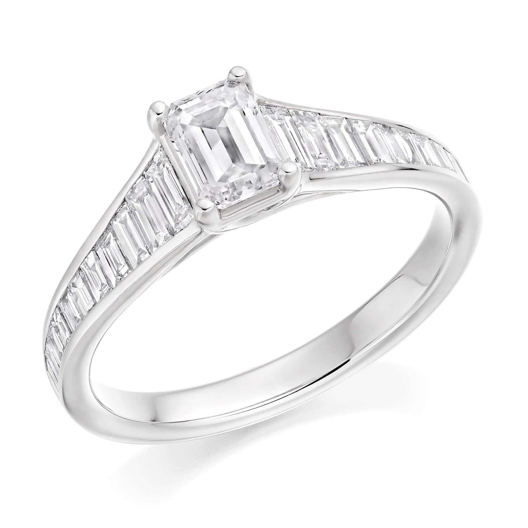 Emerald Cut Solitaire 0.5ct Diamond Engagement Ring with Diamond Set Shoulders