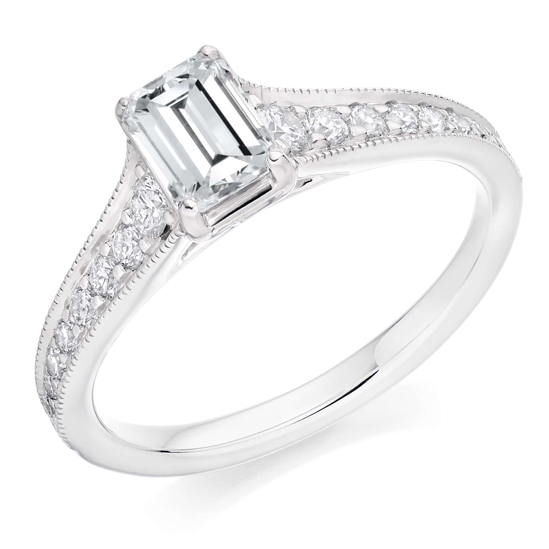 Emerald Cut Solitaire 0.75ct Diamond Engagement Ring with Diamond Set Shoulders