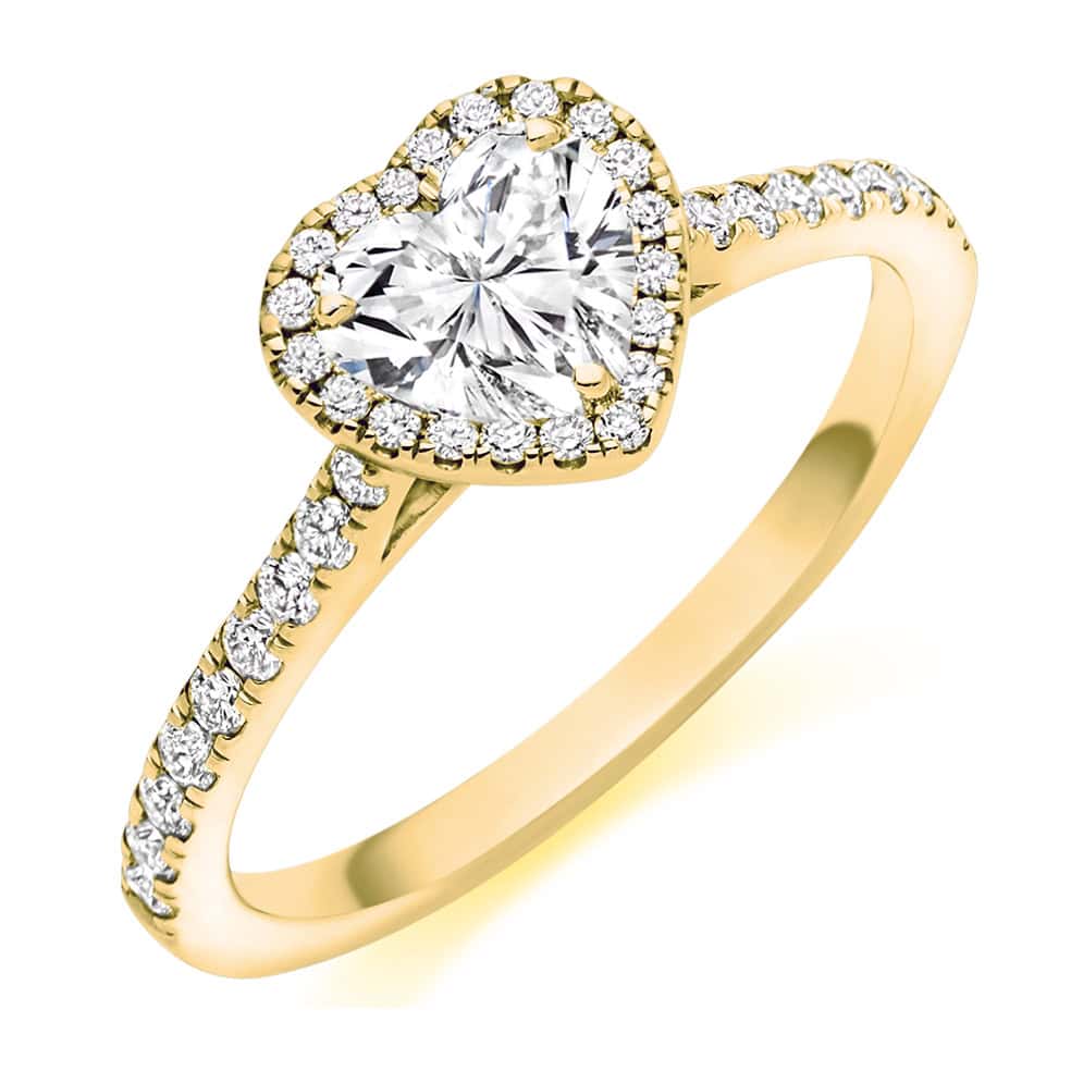 Heart Cut Halo 0.5ct Diamond Engagement Ring with Diamond Set Shoulders