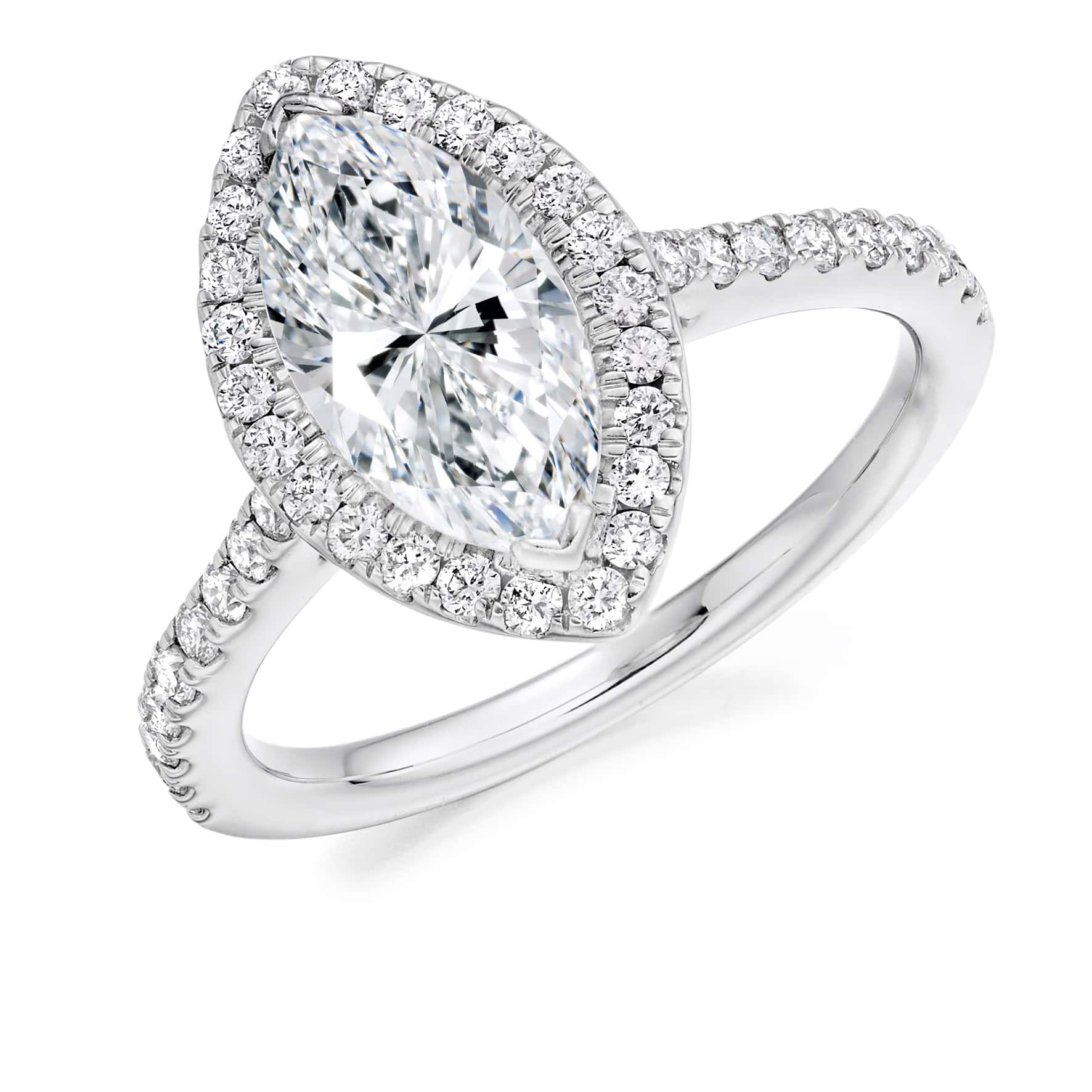 Marquise Cut Halo 1.5ct Diamond Engagement Ring with Diamond Set Shoulders