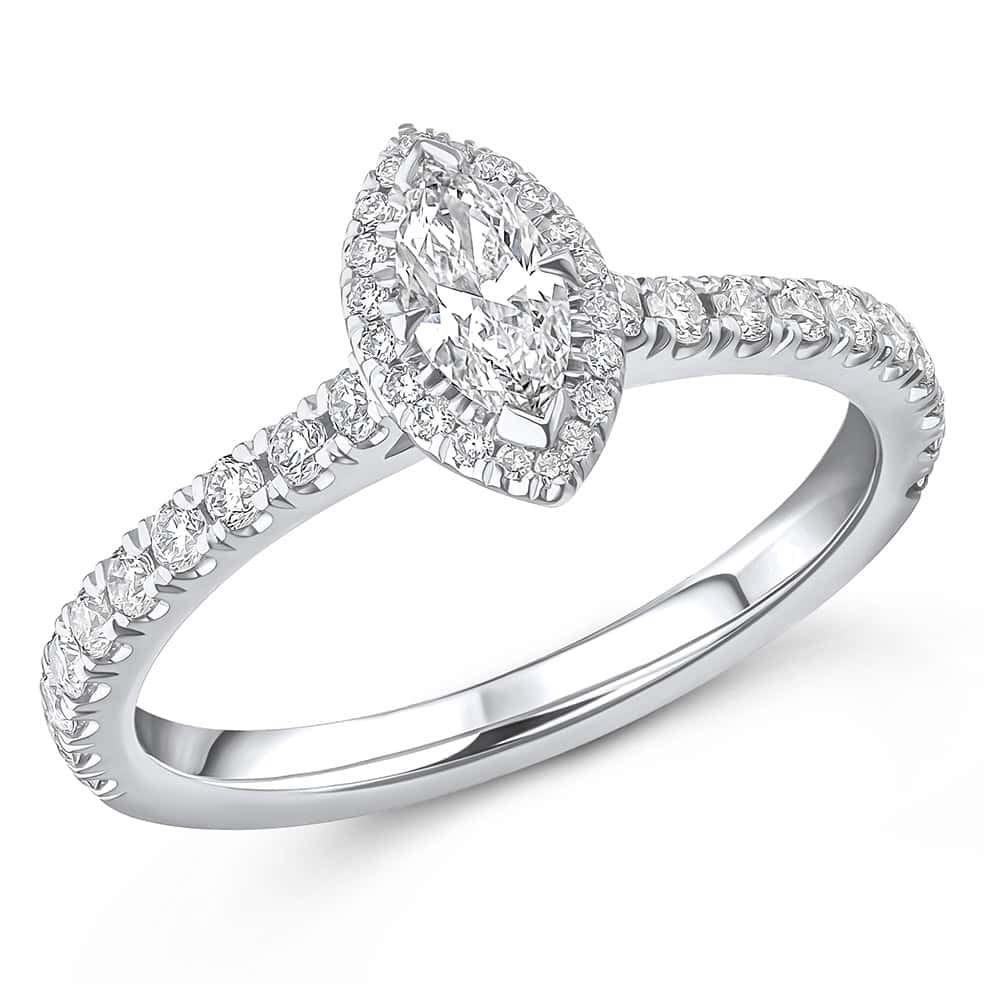 Marquise Cut Oyster Deluxe 0.25ct Diamond Engagement Ring with Diamond Set Shoulders