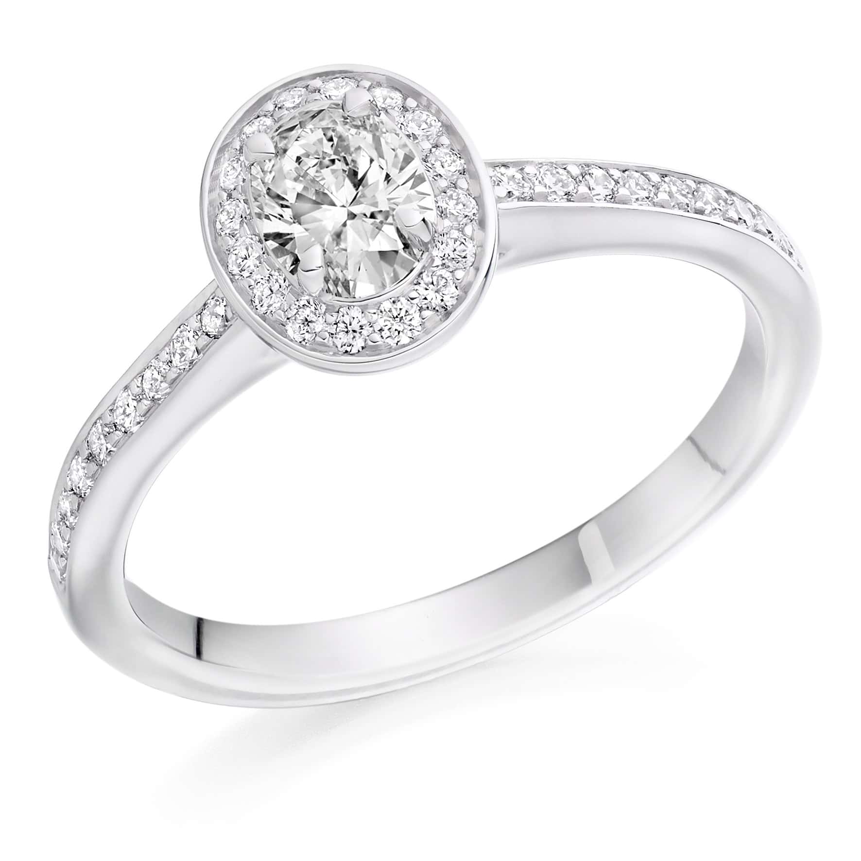 Oval Cut Halo 0.25ct Diamond Engagement Ring with Diamond Set Shoulders