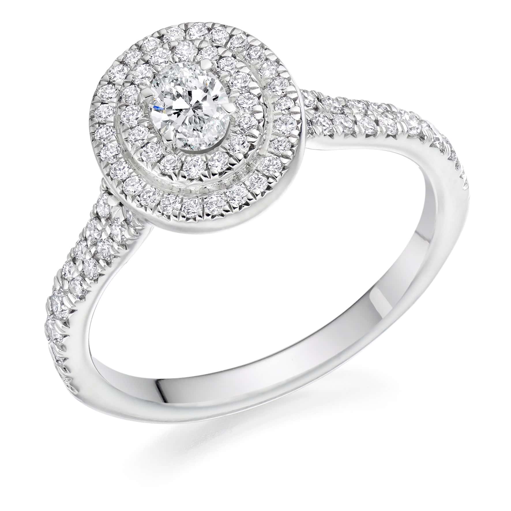 Oval Cut Halo 0.25ct Diamond Engagement Ring with Diamond Set Shoulders