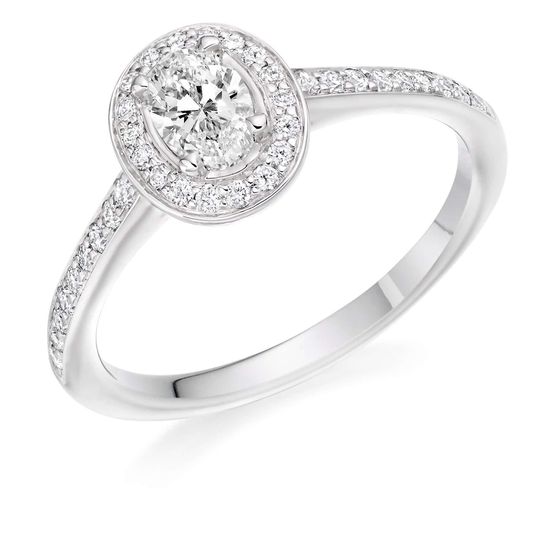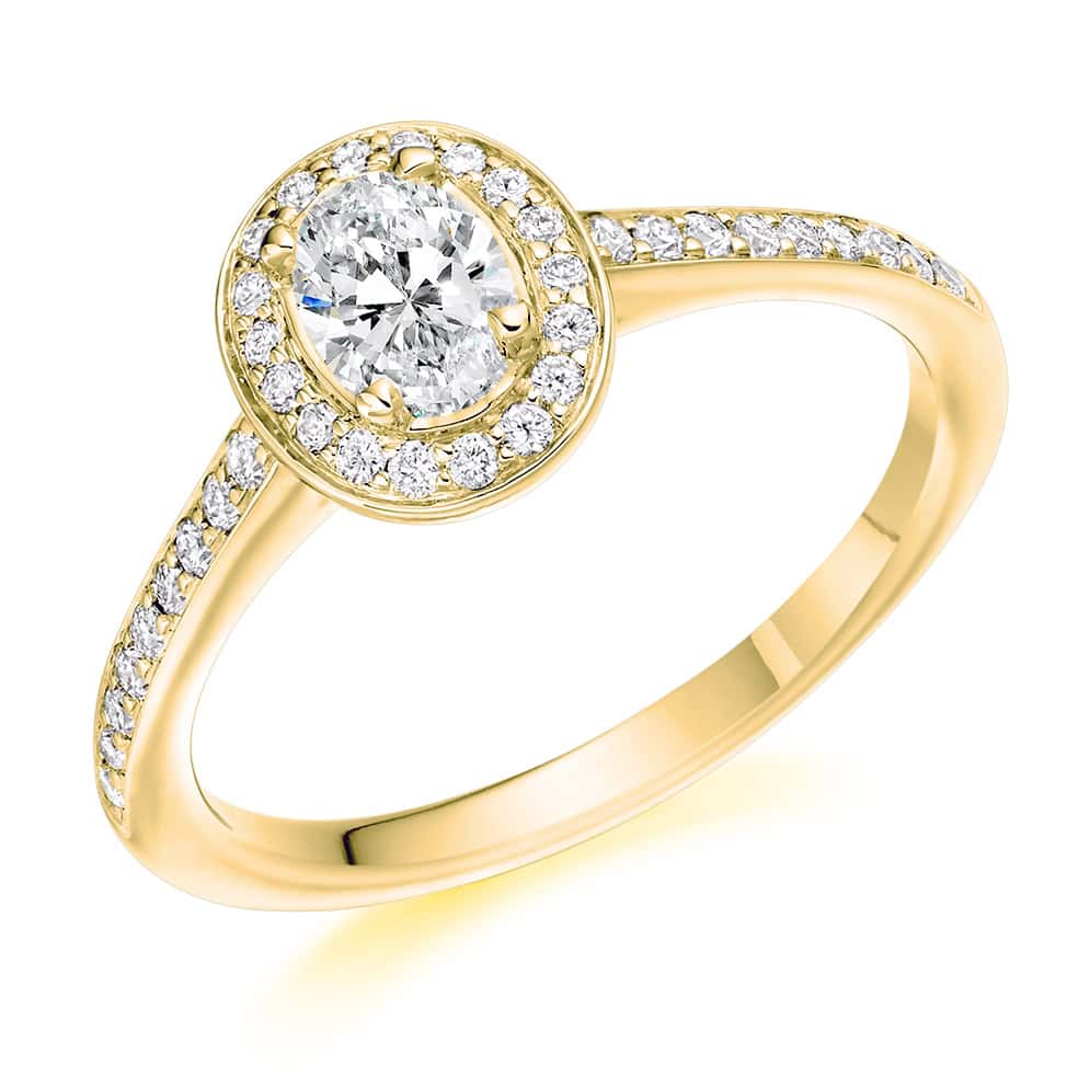 Oval Cut Halo 0.3ct Diamond Engagement Ring with Diamond Set Shoulders