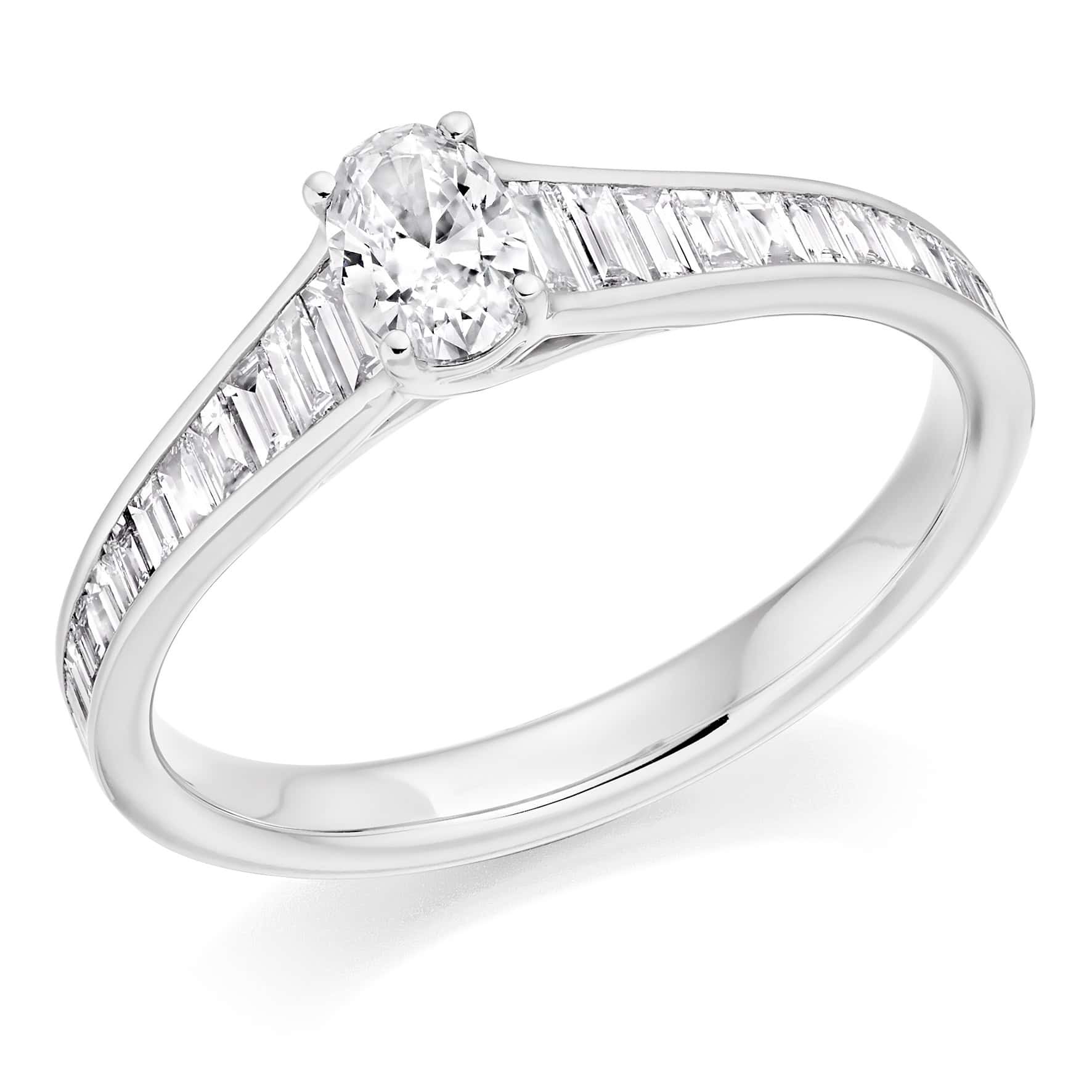 Oval Cut Solitaire 0.25ct Diamond Engagement Ring with Diamond Set Shoulders