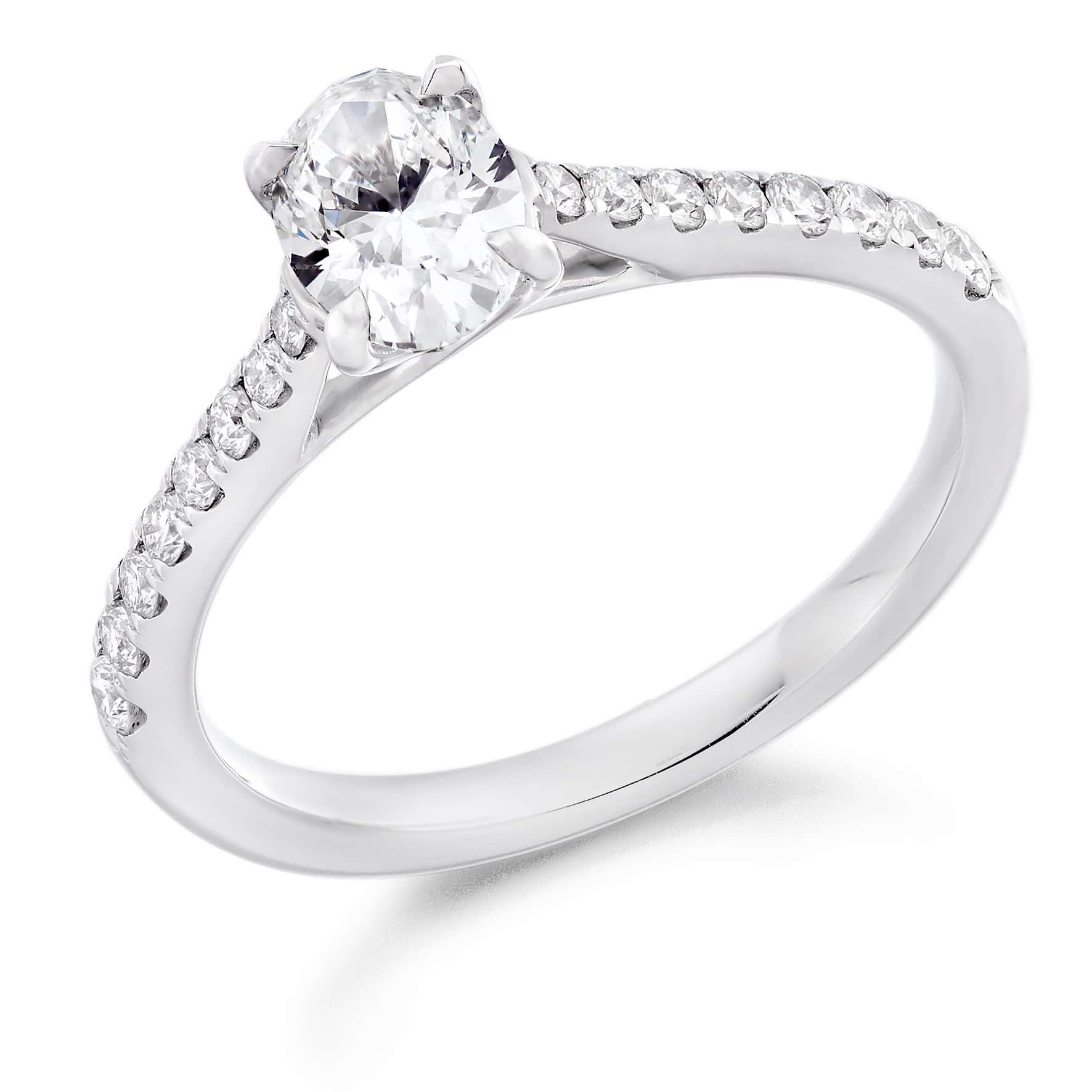 Oval Cut Solitaire 0.75ct Diamond Engagement Ring with Diamond Set Shoulders