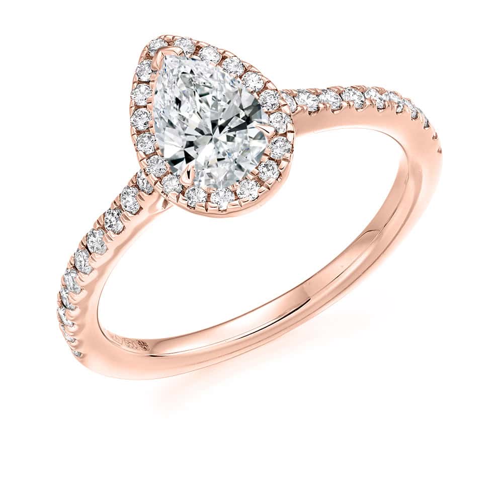 Pear Cut Halo 0.5ct Diamond Engagement Ring with Diamond Set Shoulders