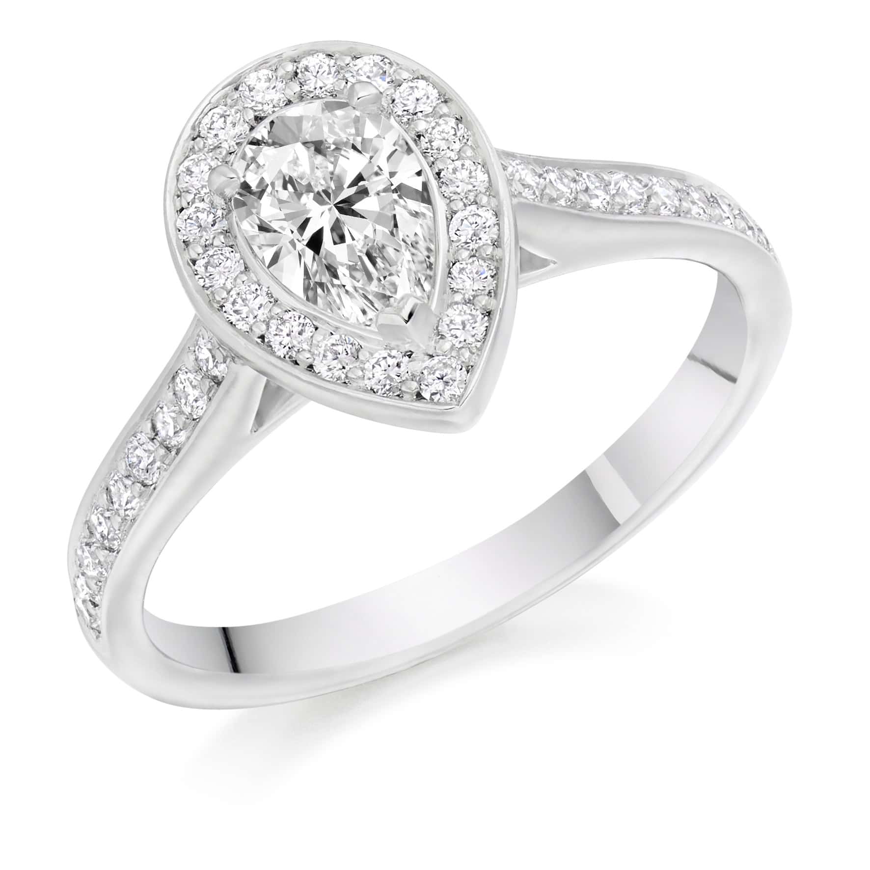 Pear Cut Halo 0.5ct Diamond Engagement Ring with Diamond Set Shoulders