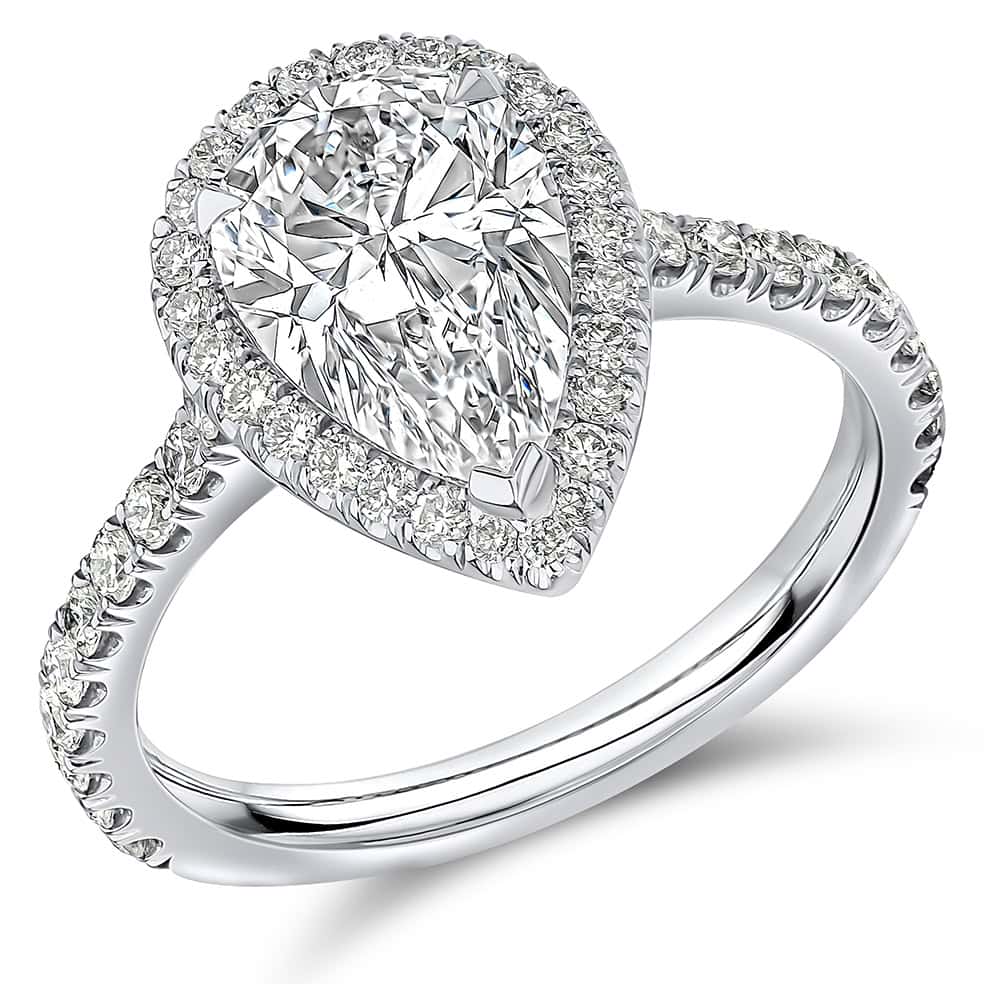 Pear Cut Oyster Deluxe 2ct Diamond Engagement Ring with Diamond Set Shoulders
