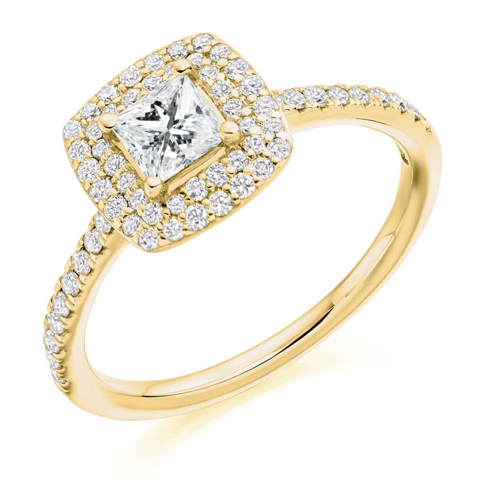 Princess Cut Halo 0.5ct Diamond Engagement Ring with Diamond Set Shoulders