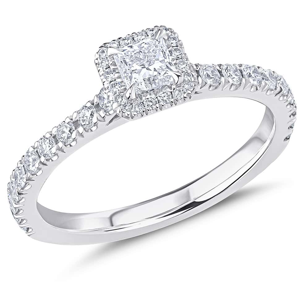 Radiant Cut Halo 1ct Diamond Engagement Ring with Diamond Set Shoulders